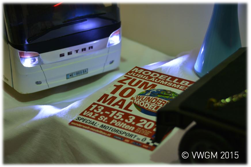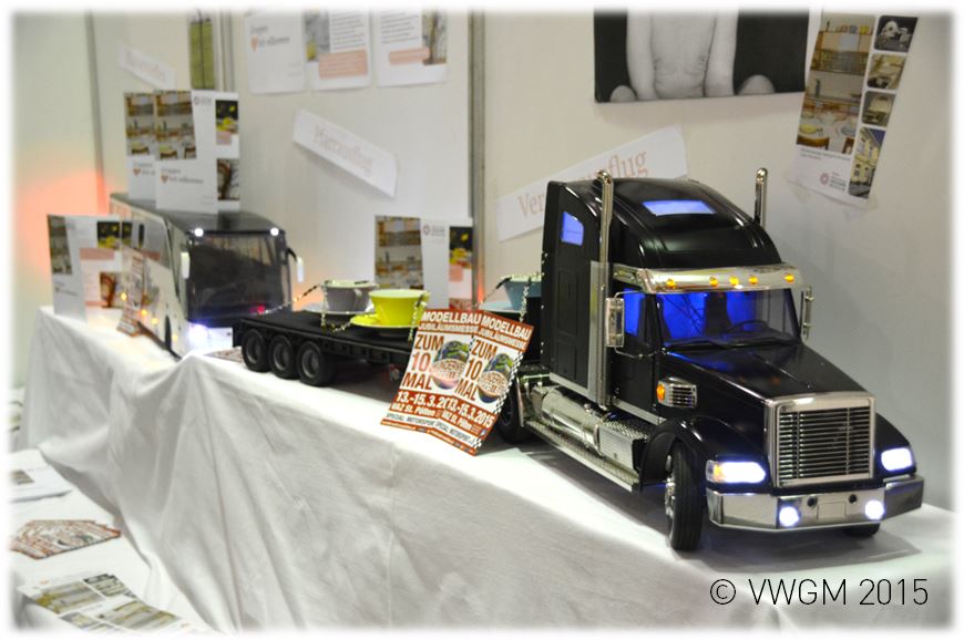 Als Highlights konnten bei unserem Stand ein Modellbus und ein Modell-LKW mit originalen Daisy-Mokkatassen bewundert werden. Dabei durfte natürlich auch der Hinweis nicht fehlen, dass in Kürze im VAZ auch die Modellbaumesse stattfinden wird.