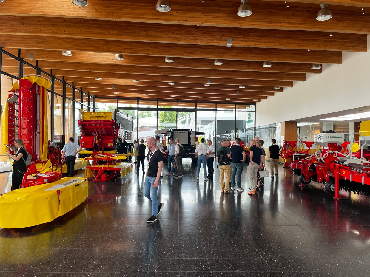 Am Nachmittag ging es dann weiter zur Firma PÖTTINGER Landtechnik GmbH. Dort erhielten wir einen exklusiven Einblick in die Produktion, erlebten hautnah die Fertigung moderner Landmaschinen sowie hochwertiger Maschinen im Bereich Grünland.