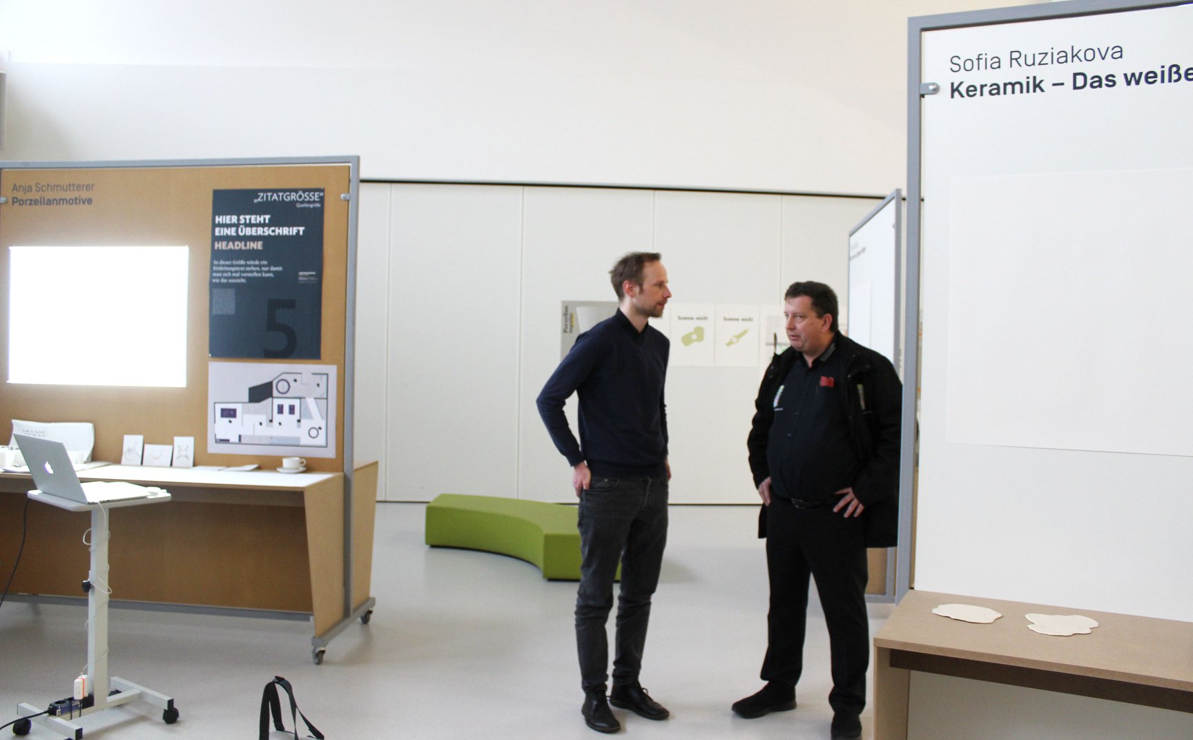 Präsentiert wurde vor hochkarätigen Gäste wie Robert Rüf (Designer und AUsstellungsgestalter), Sabina Durdik (Innovation Manager bei Laufen), Christian Rapp und Nadia Rapp-Wimberger (Ausstellungskuratoren und externer Lektor an der NDU) sowie Manfred Schönleitner vom Geschirr-Museum.