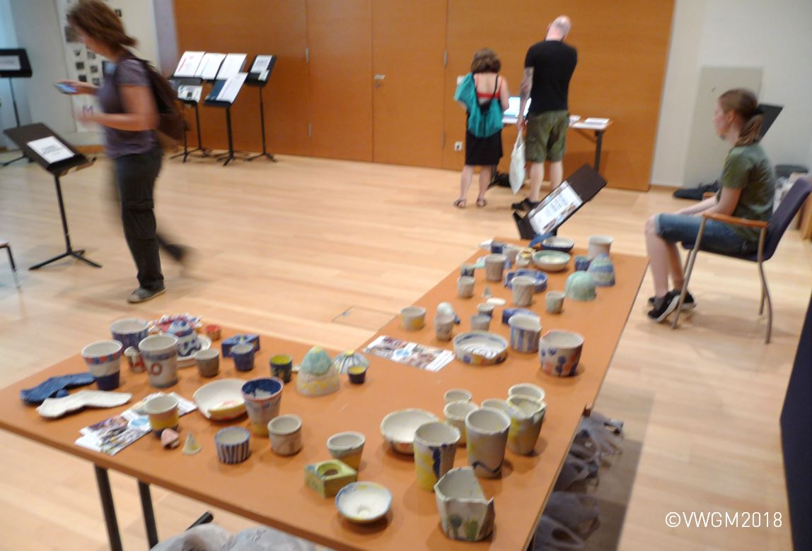 Gute Stimmung und großer Andrang war dann am Freitag, den 6. Juli 2018, wo die Abschlussveranstaltung im großen Saal der Universität für Musik und darstellende Kunst Wien stattfand. Dort konnten die fertigen Objekte bestaunt und im Anschluss von den Kindern als Erinnerung mitgenommen werden.