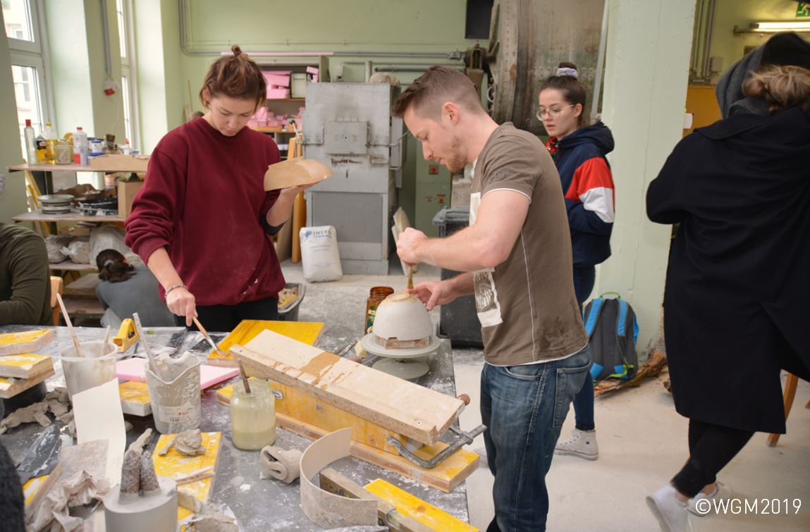 Unter der Leitung von Kerammodelleur Hermann Seiser und Simone Kicker wurden alle Recourcen gut genutzt, um es 24 hochmotivierten Studentinnen und Studenten zu ermöglichen, an der Umsetzung ihrer Ideen im Wilhelmsburger Keramik-Studio behilflich zu sein.