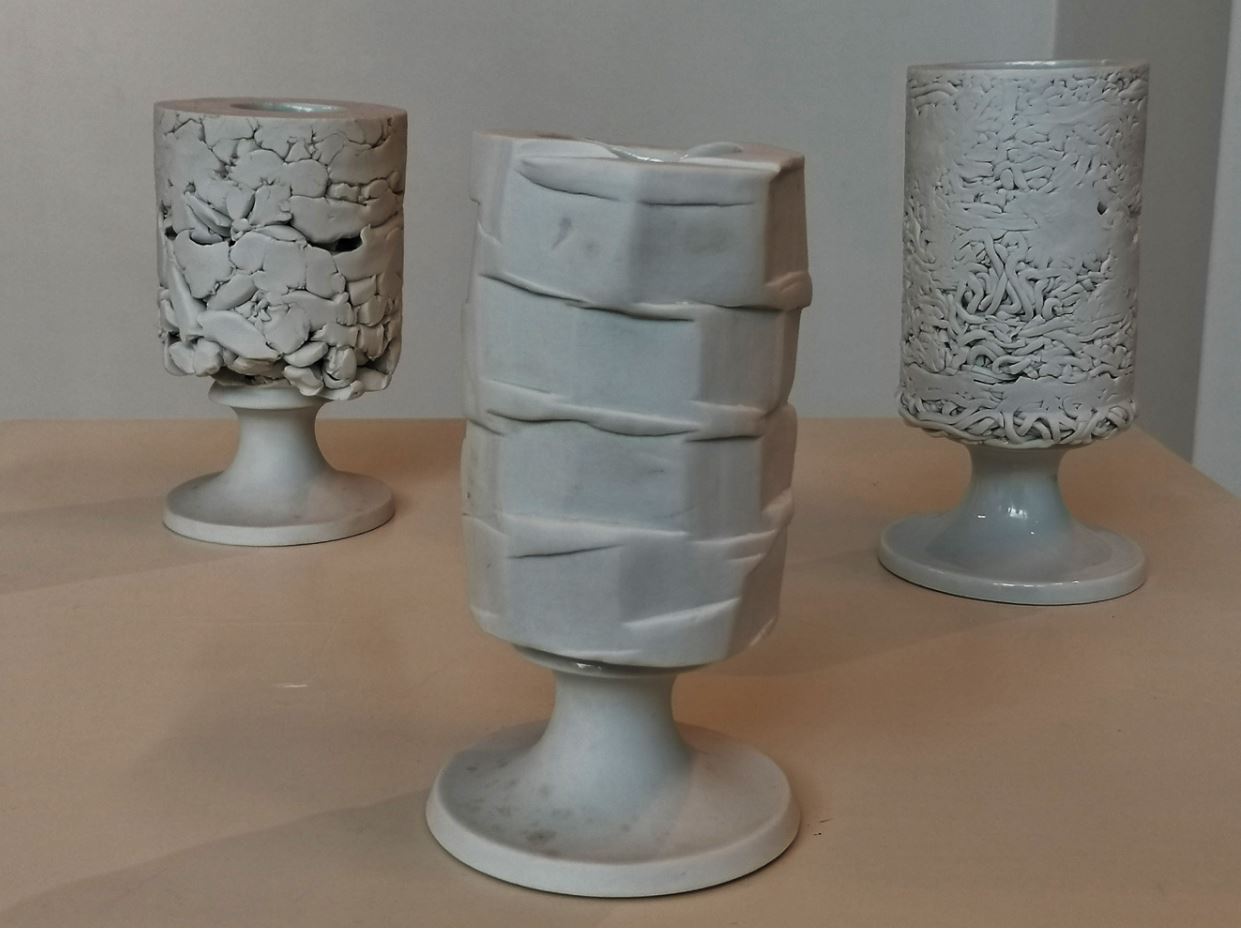 verschiedene Entwürfe und Prototypen für Gebrauchskeramik, wie die sog. „Sparraupe“ oder ein