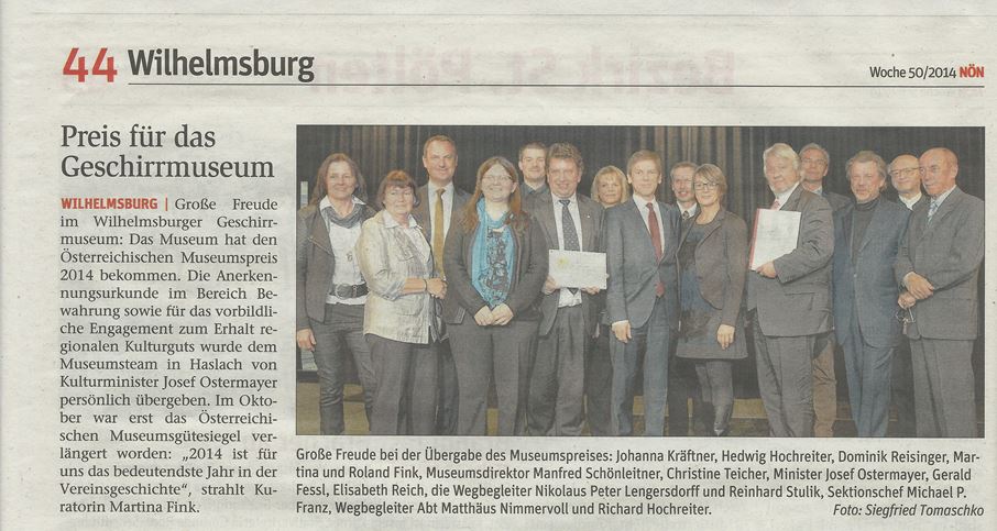 2014-12-09 Beitrag in der St.Pöltner NÖN - Preis für Geschirrmuseum