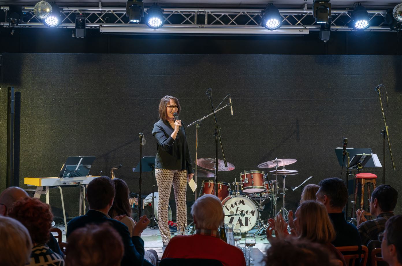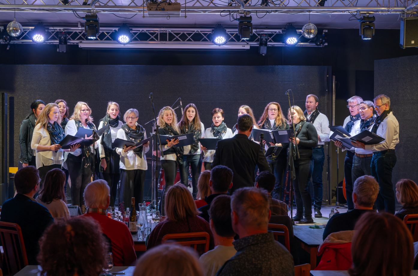 Das mit 17 Sänger:innen angereiste Ensemble 3150 gab sich abwechselnd mit den Jazz Baristas, bestehend aus Klaus Zalud (Drums), Franz Griesler (Bass), Johnny Leonhardsberger (Saxofon), Herbert Schedlmayer (Klavier) sowie der bezaubernden Analena Matejschek (Gesang) einen abwechslungsreichen Abend,