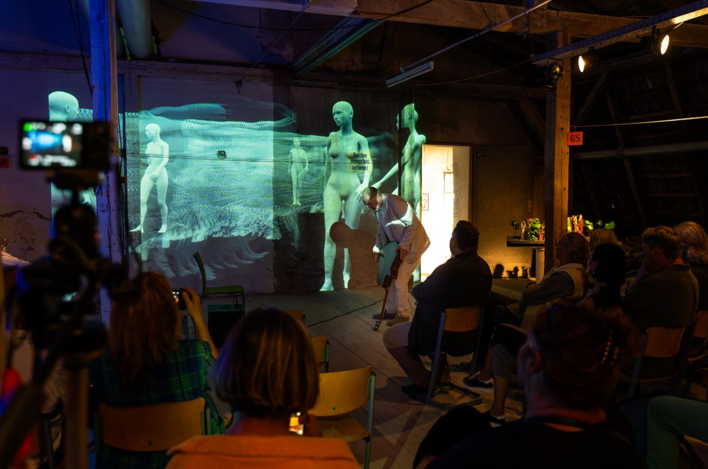 Die Künstlergruppe Stacheln präsentierte ihre neueste Darbietung "Standpunkt" mit den Künstlern Karl Ritter und Elena Romenkova und luden zu einem digital- musikalischen Klangfarbendialog zwischen Bild und Ton ein....
