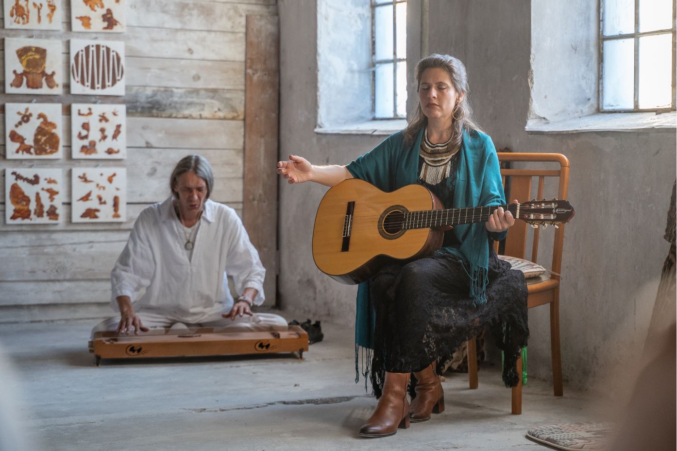 Die schwebende meditative Qualität der Obertöne entführte die Besucher in eine zauberhaft andere Welt. Hierbei gibt es keine festgefügten Strukturen, Musik wird ausschließlich im Moment erschaffen.